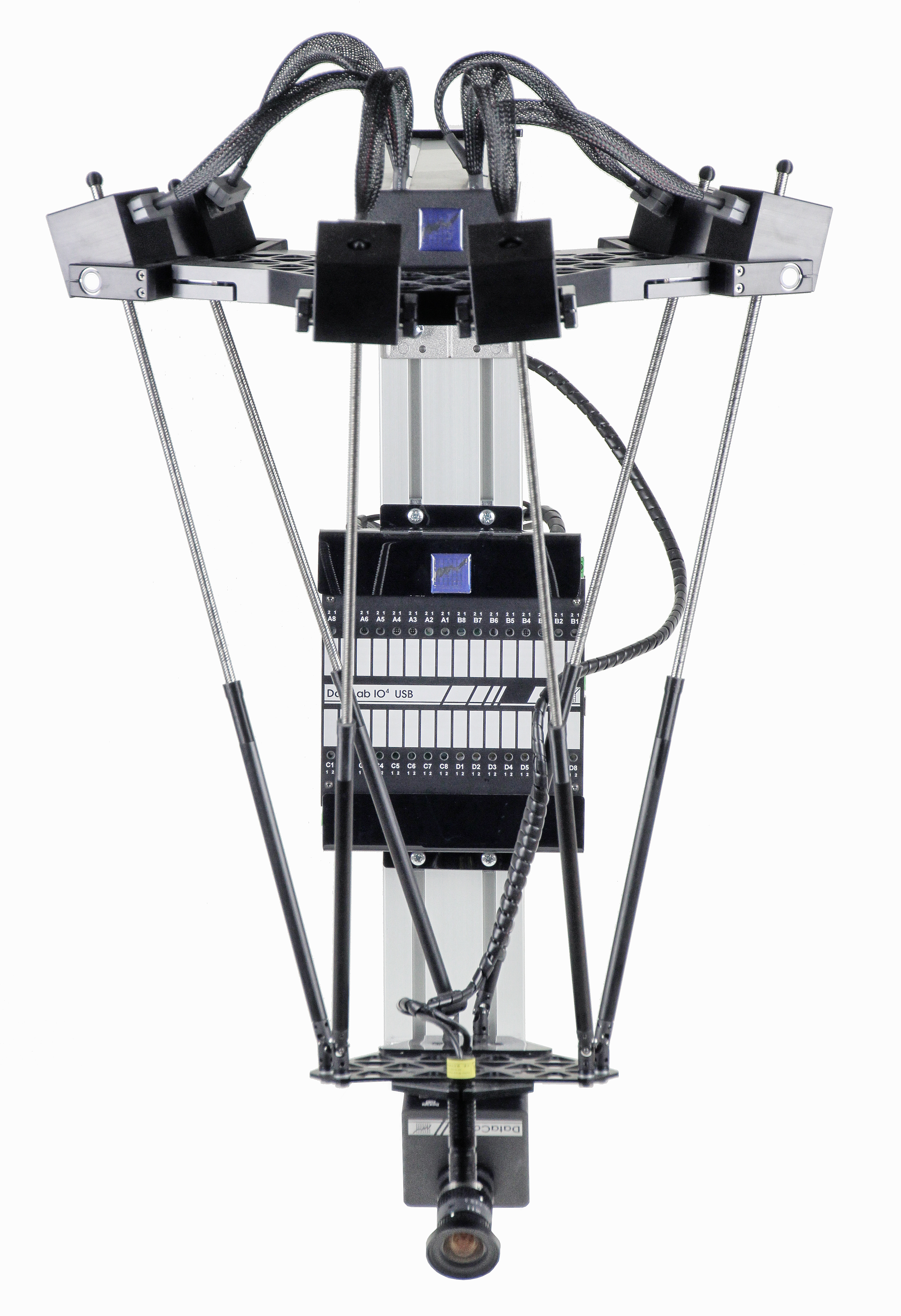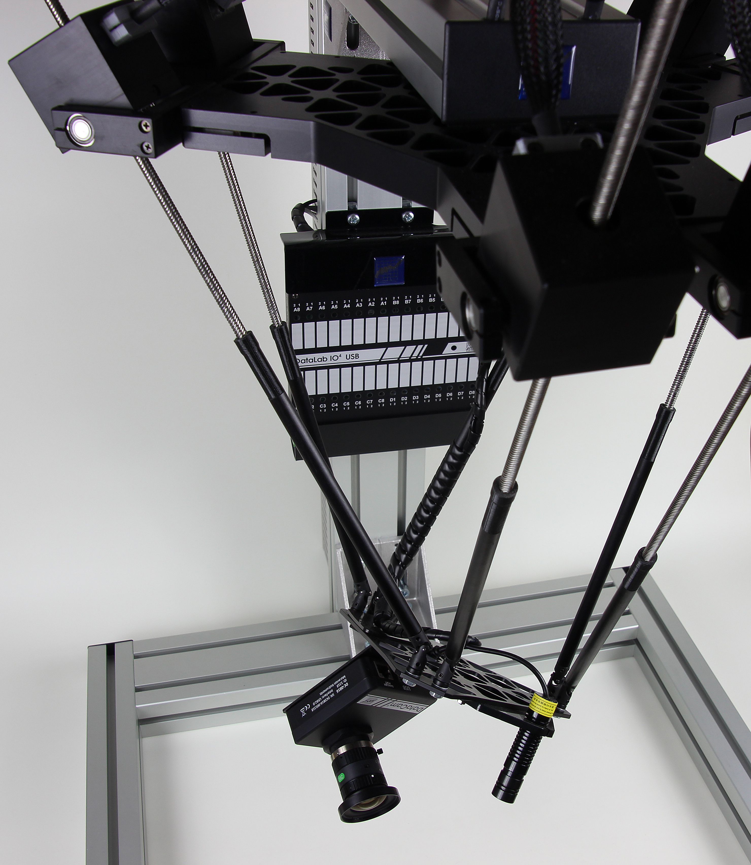 Cenově efektivně lze celou řadu zadání s potřebou přemísťování kamery vyřešit pomocí delta manipulátoru, kde je plošina pro upevnění kamer uchycena v kloubech na konci šesti závitových tyčí. Každá závitová tyč pak prochází aktuátorem s krokovým motorkem. Celá takto koncipovaný manipulátor lze jednoduše a elegantně řídit jedinou jednotkou DataLab vybavenou moduly pro řízení krokových motorů.