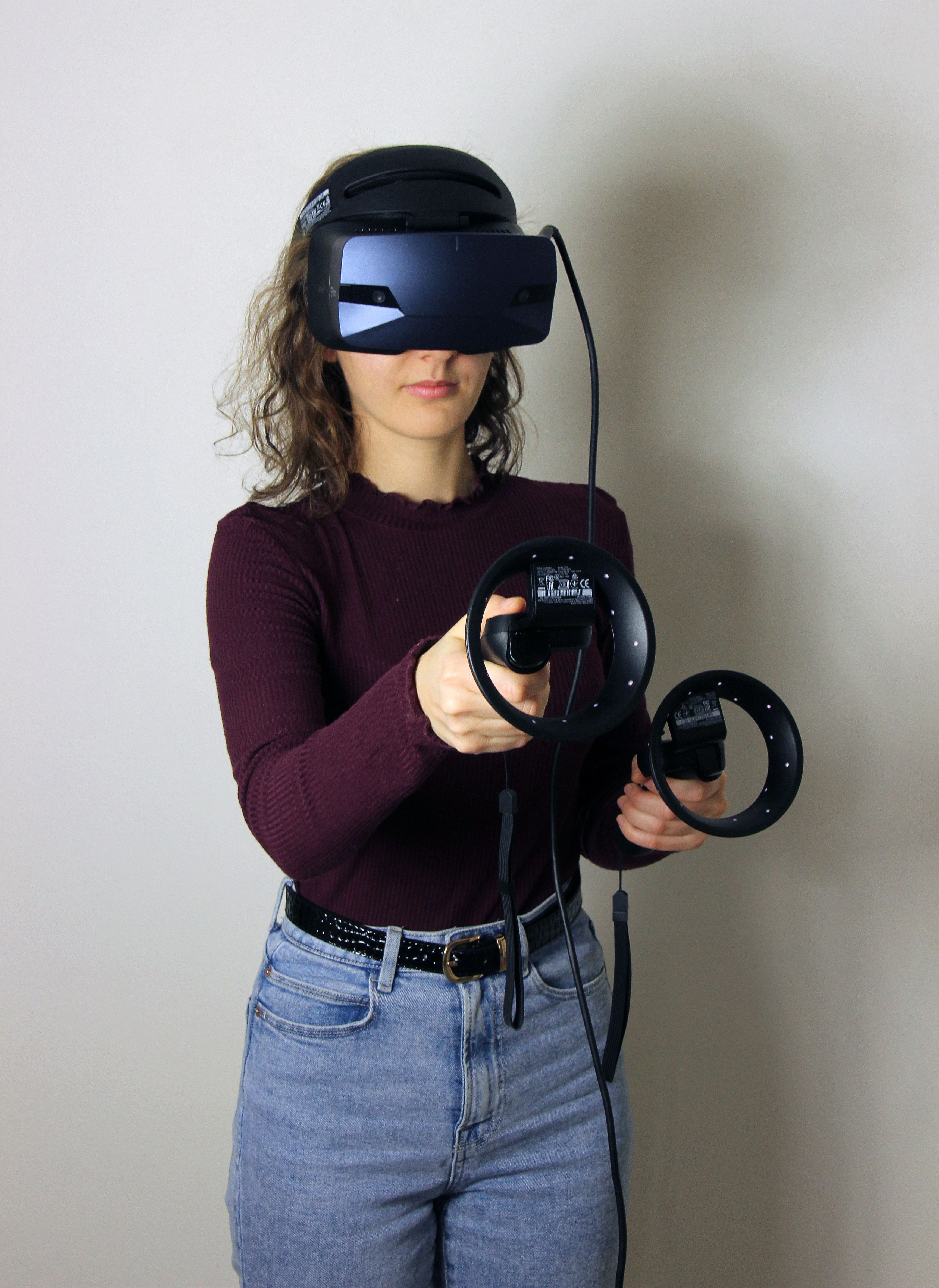 Řídicí prvky ve scéně lze ve virtuální realitě ovládat pomocí controllerů