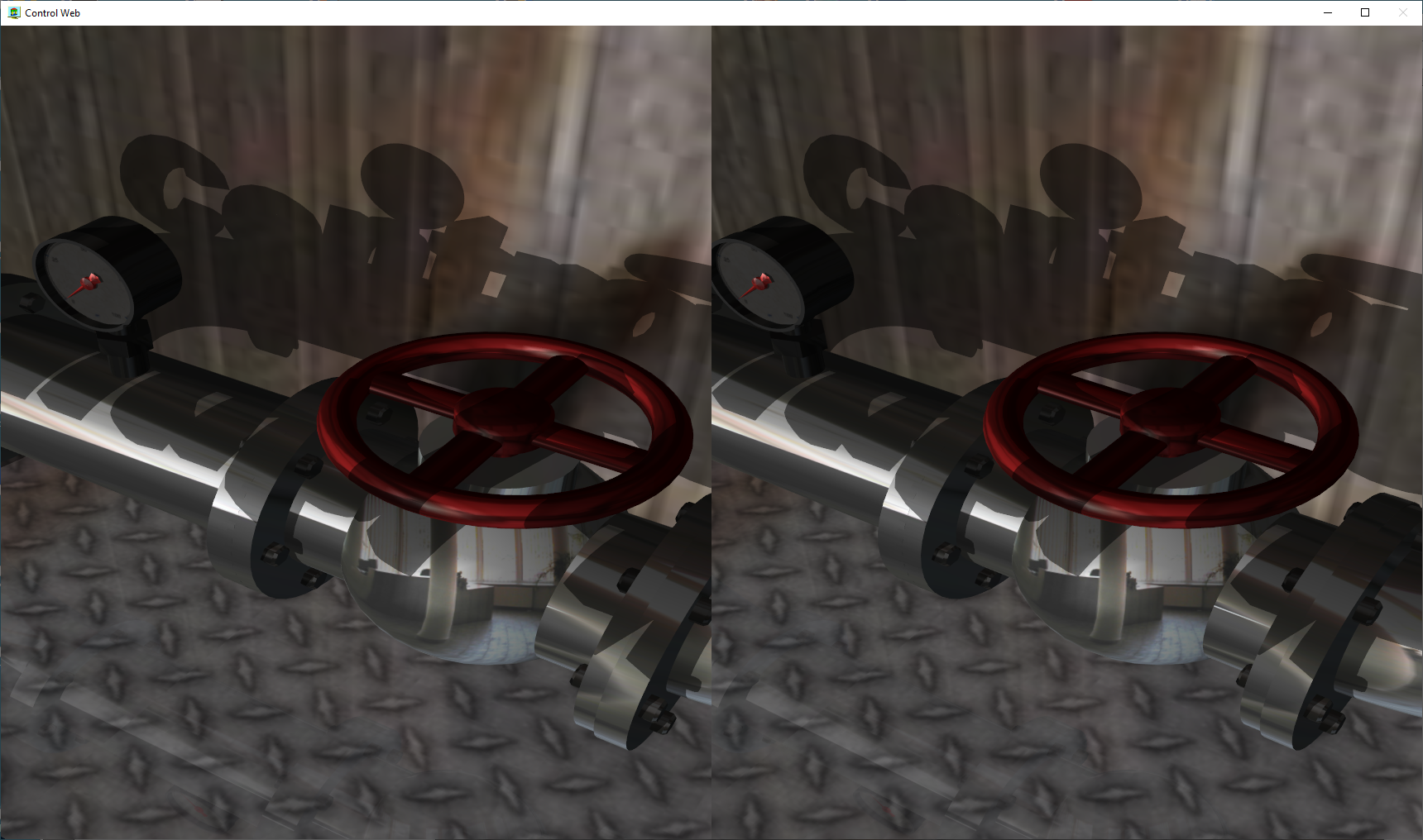 Při implementaci virtuální reality v prostředí systému Control Web jsme usilovali o co největší otevřenost a snadnou rozšiřitelnost o podporu dalších standardů. Nyní je možno používat brýle a ovladače standardu Microsoft WMR (Windows Mixed Reality). Stereografický obraz je vytvářen virtuálním přístrojem gl_scene. Je tedy velice snadné řadu současných aplikací rozšířit o prostředí virtuální reality. Do systému WMR je přenášen již hotový obraz pro levý a pravý zobrazovač v brýlích. Přenos dat mezi jednotlivými procesy je natolik rychlý, že lze přenášet obraz v plném rozlišení bez nutnosti ztrátové komprese. Jako klient systému WMR pro aplikační program vystupuje virtuální přístroj vr_headset. Tento virtuální přístroj si případě potřeby poté v samostatném procesu spouští vlastní Microsoft WMR portál. Velkou výhodou tohoto řešení je, že obrovský a značné množství systémových zdrojů spotřebovávající portál není součástí paměti procesu systému Control Web a podstatně méně tak ohrožuje výkon a stabilitu naší aplikace. Nepoužíváte-li tedy v aplikaci virtuální realitu, nic z její podpory vás nezdržuje ani neobtěžuje. Navíc je zde také možnost postupného přibývání dalších virtuálních přístrojů pro další standardy virtuální reality.