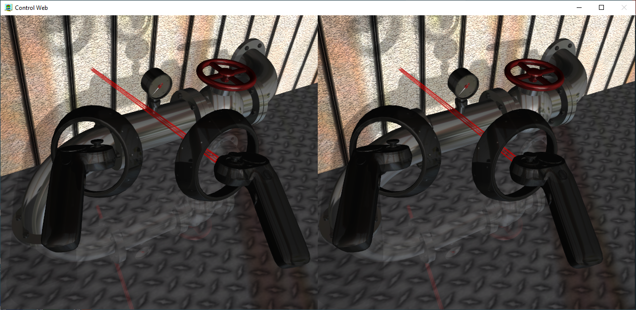 Scéna systému Control Web nejen generuje prostorový obraz, ale také získává aktuální pozici a orientaci v prostoru. Kromě toho také reaguje na povely z prostorových ovladačů nebo na pozice a gesta rukou. Virtuální přístroje v prostoru scény lze pomocí ovladačů nebo rukou normálně ovládat. Prostřednictvím ovladačů pro virtuální realitu se také lze pohybovat prostorem. Gesta rukou pohyb prostorem neumožňují.