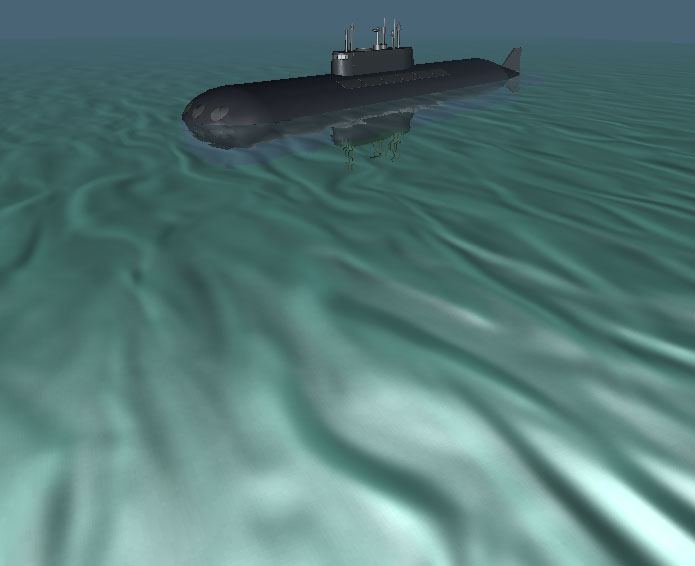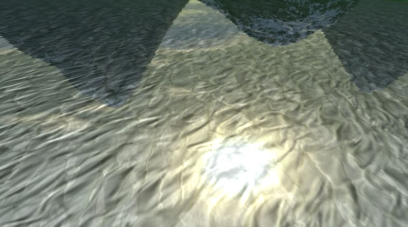 Vodní hladina s odrazem i lomem světla a animací
