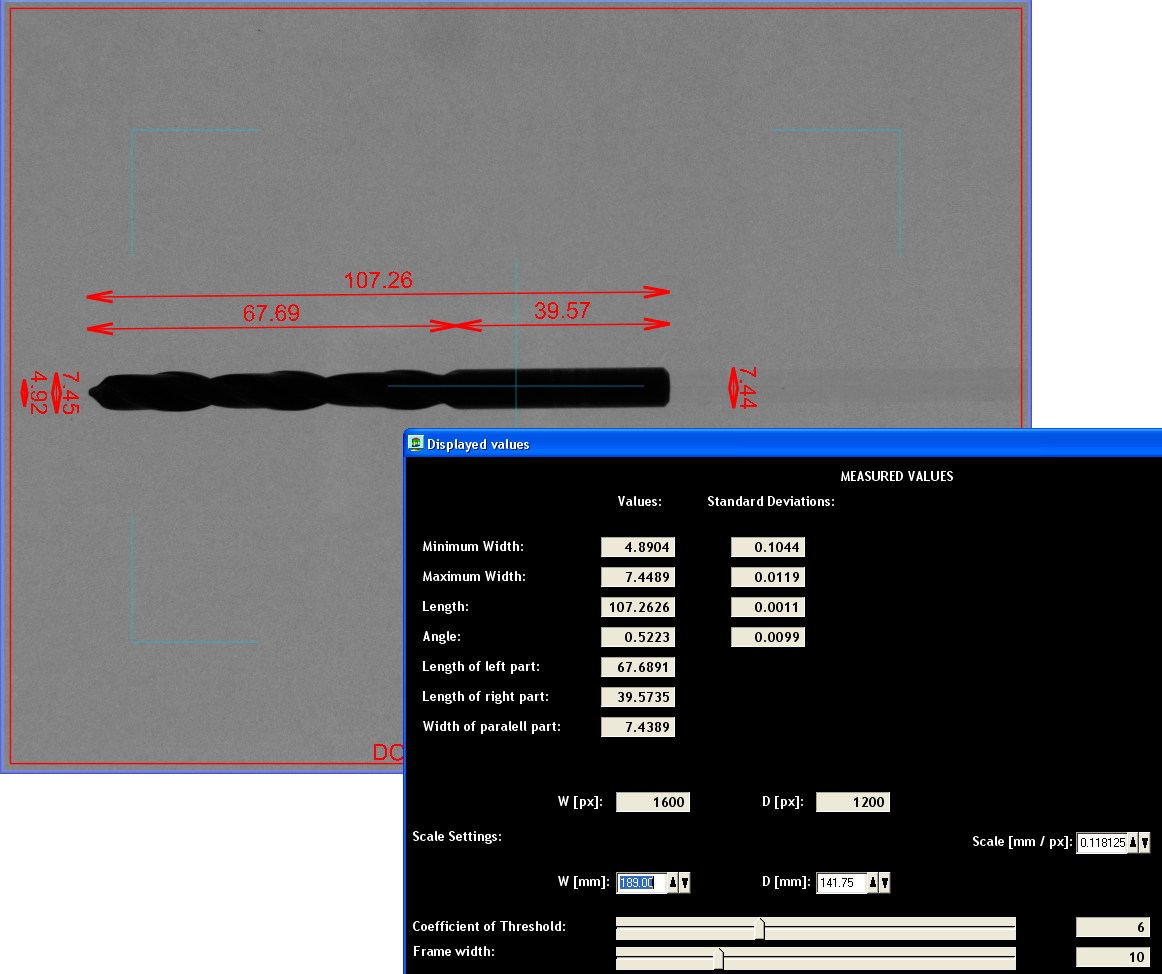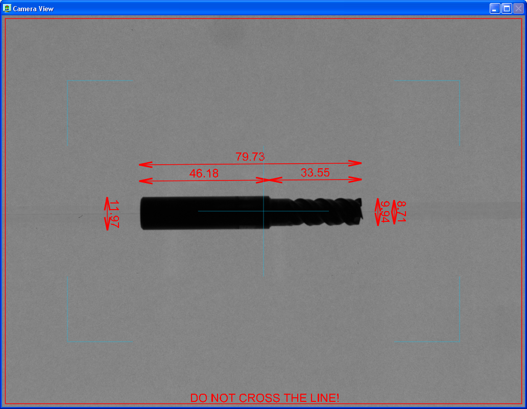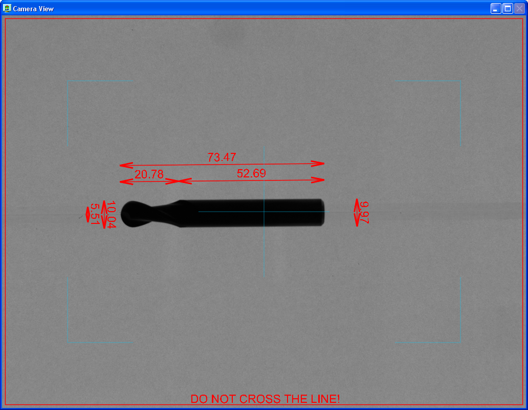 Máme tedy zajištěn klidný a stabilní obraz. Nyní je nutno ještě zvládnout všechna úskalí aberací a radiálních zkreslení objektivu a veškeré aspekty perspektivní projekce a efekty osvětlení. Přesný, ale rozměrný a drahý telecentrický objektiv není pro toto řešení vhodný. Zde je použit běžný objektiv Fujinon, jehož geometrická zkreslení jsou se subpixelovou přesností softwarově korigována v kamerových komponentách systému Control Web. Na závěr jsou ještě korigovány artefakty perspektivní projekce. Takto je dosaženo celkové přesnosti a reprodukovatelnosti cca 3 setiny milimetru. Nástroje mohou být s touto přesností měřeny v jakékoliv pozici v libovolném místě obrazového pole.