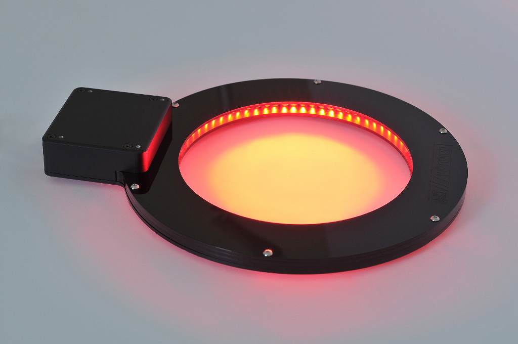 Kompaktní osvětlovací jednotka pro osvětlení v temném poli s volitelnou barvou světla.