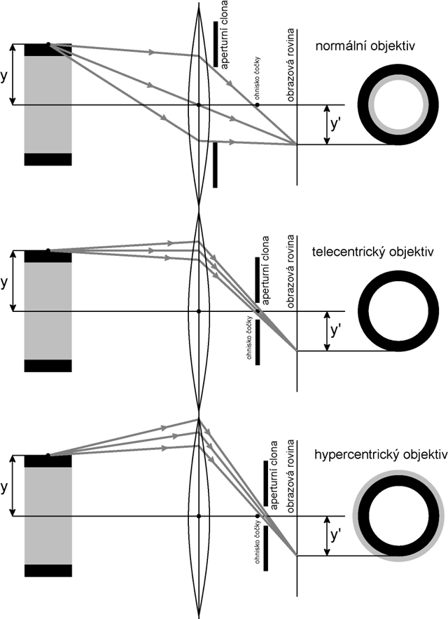 velmi rozměrné a drahé. Princip telecentrických objektivů je
