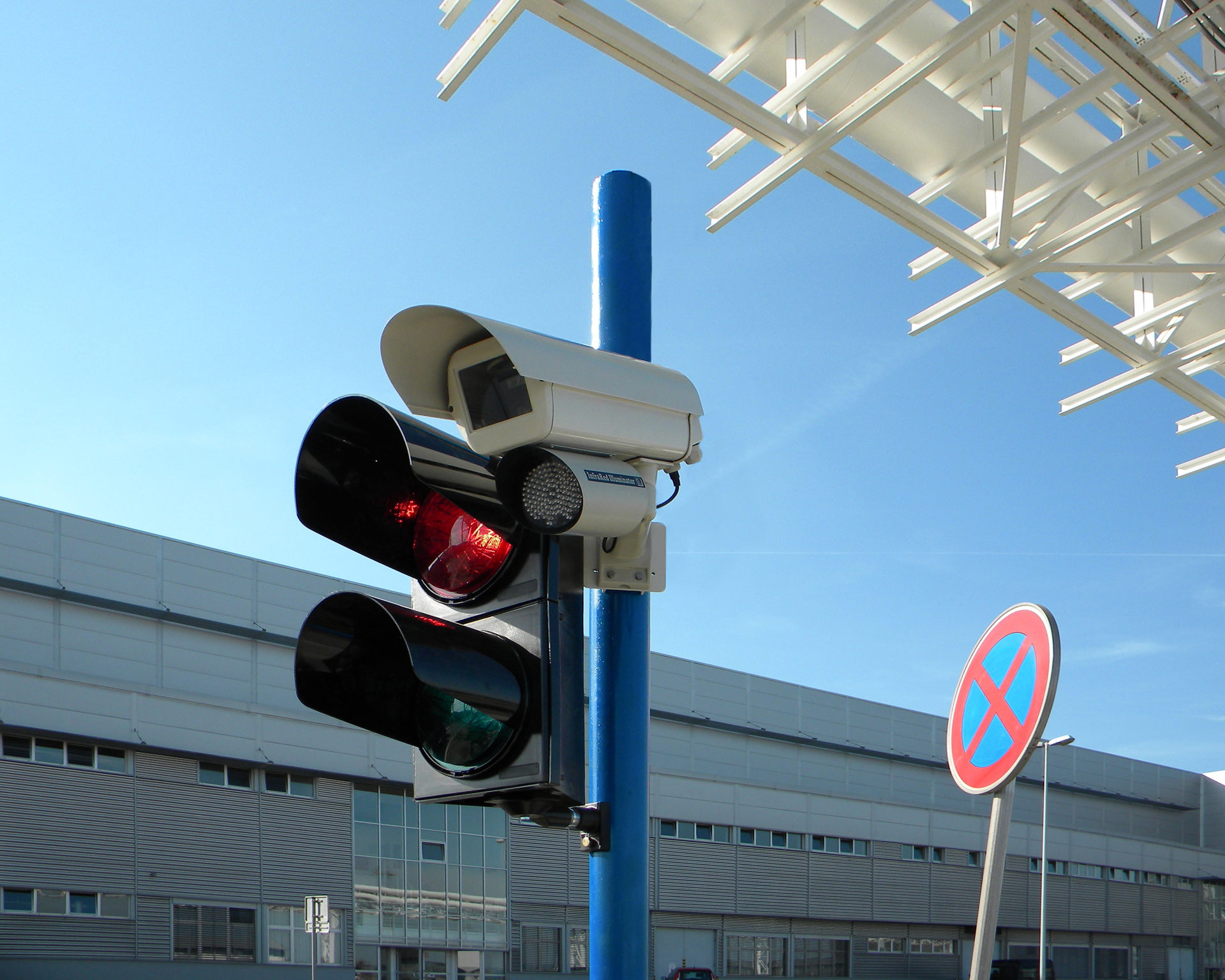 1. Zatímco v obvyklých úlohách strojového vidění je scéna stabilně a dostatečně osvětlena, zde si musí systém poradit s obrovským rozsahem jasů a nejistým kontrastem mezi tmavými znaky a světlým pozadím značky. Často je k dispozici pouze velmi malý a v ploše značky proměnlivý kontrast. Jas světlého pozadí v jednom místě značky bývá nižší než jas tmavého znaku v jiné části značky. Systémy obvykle musí pracovat i v noci, kdy je nutno číst tmavou značku mezi zářícími světlomety automobilu. Zde je nutno použít doplňkové osvětlení, které ale nesmí nijak oslňovat a rušit řidiče. Jedinou možností je použití blízkého infračerveného světla s vlnovou délkou kolem 900 nm, které je již neviditelné pro lidské oko a současně je ještě dobře „viditelné“ pro křemíkové CCD obrazové senzory. Výhodou tohoto řešení je také to, že obrazy pořízené v bízkém IR spektru se svým rozdělením jasů ještě značně podobají lidskému vidění obrazu. V uváděné aplikaci je s výhodou použita černobílá CCD kamera DataCam 1416 s rozlišením 1392 × 1040 bodů, která má vysokou citlivost v blízkém IR spektru. Kamera je vybavena vestavěným filtrem propouštějícím pouze tuto část spektra.