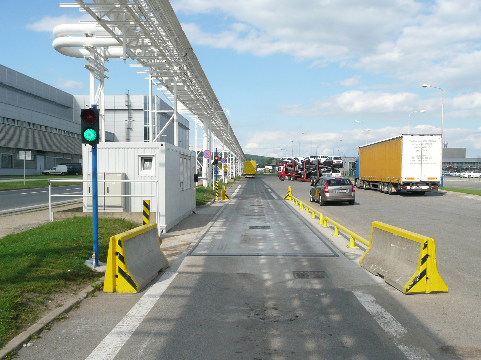 3. Programové vybavení musí spolehlivě fungovat i v případech nevýhodného umístění kamery mimo jízdní pruh, které způsobuje deformace geometrie obrazu. Systém VisionLab umožňuje v těchto případech zařazení korekcí geometrie obrazu řešené v reálném čase v GPU bez zatěžování počítače. Popsaný systém výrazně přispívá k automatizaci provozu nákladní dopravy na mostové váze u vjezdu do areálu výrobního závodu. Schopnost kamer DataCam zpracovat vysokou dynamiku jasu obrazu a stabilní a čistý obraz, který poskytují, se značnou mírou podílí na spolehlivém čtení veškerých evropských registračních značek v nejrůznějších světelných podmínkách ve dne i v noci.