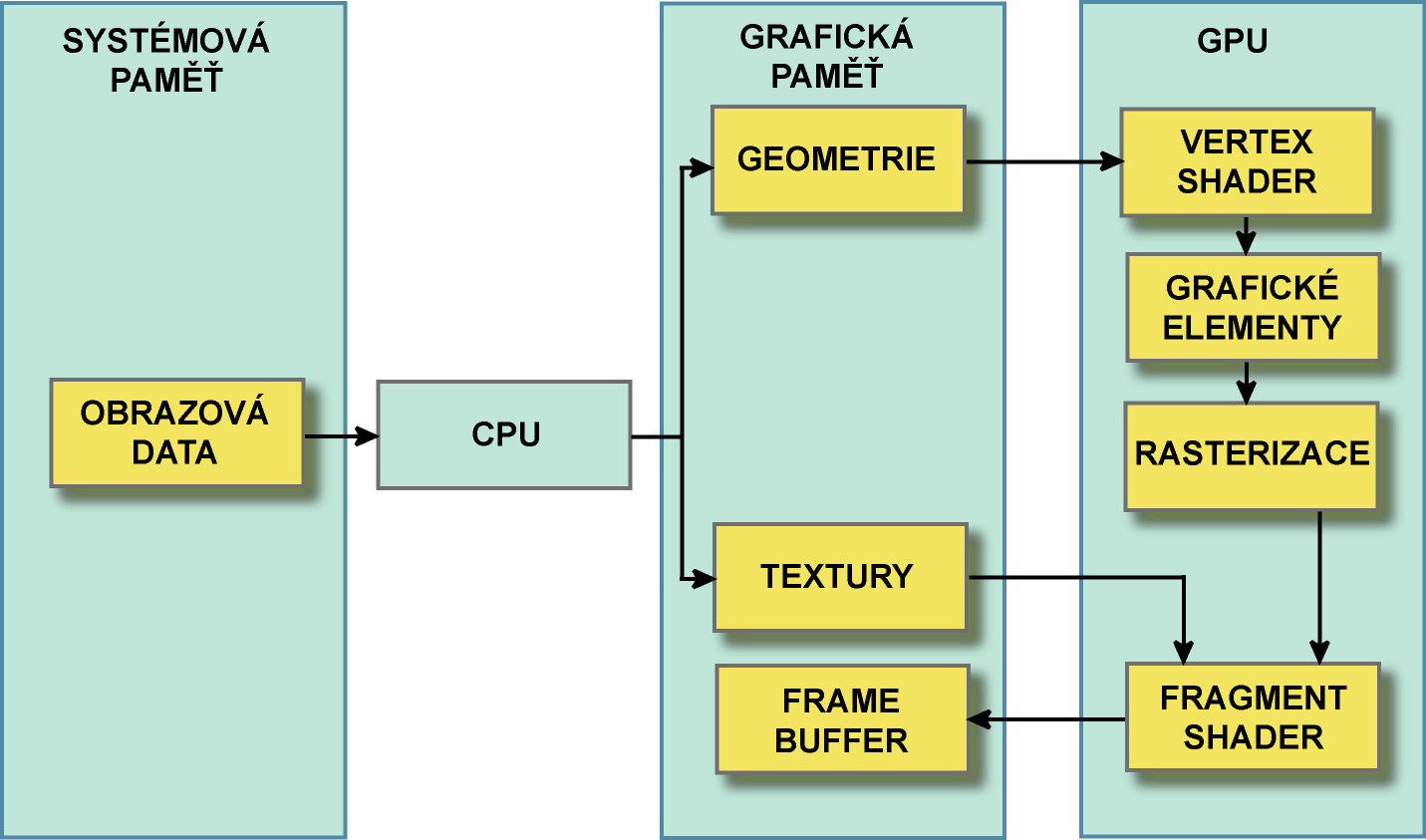 prostřednictvím grafického API. Původní základní princip GPU, totiž