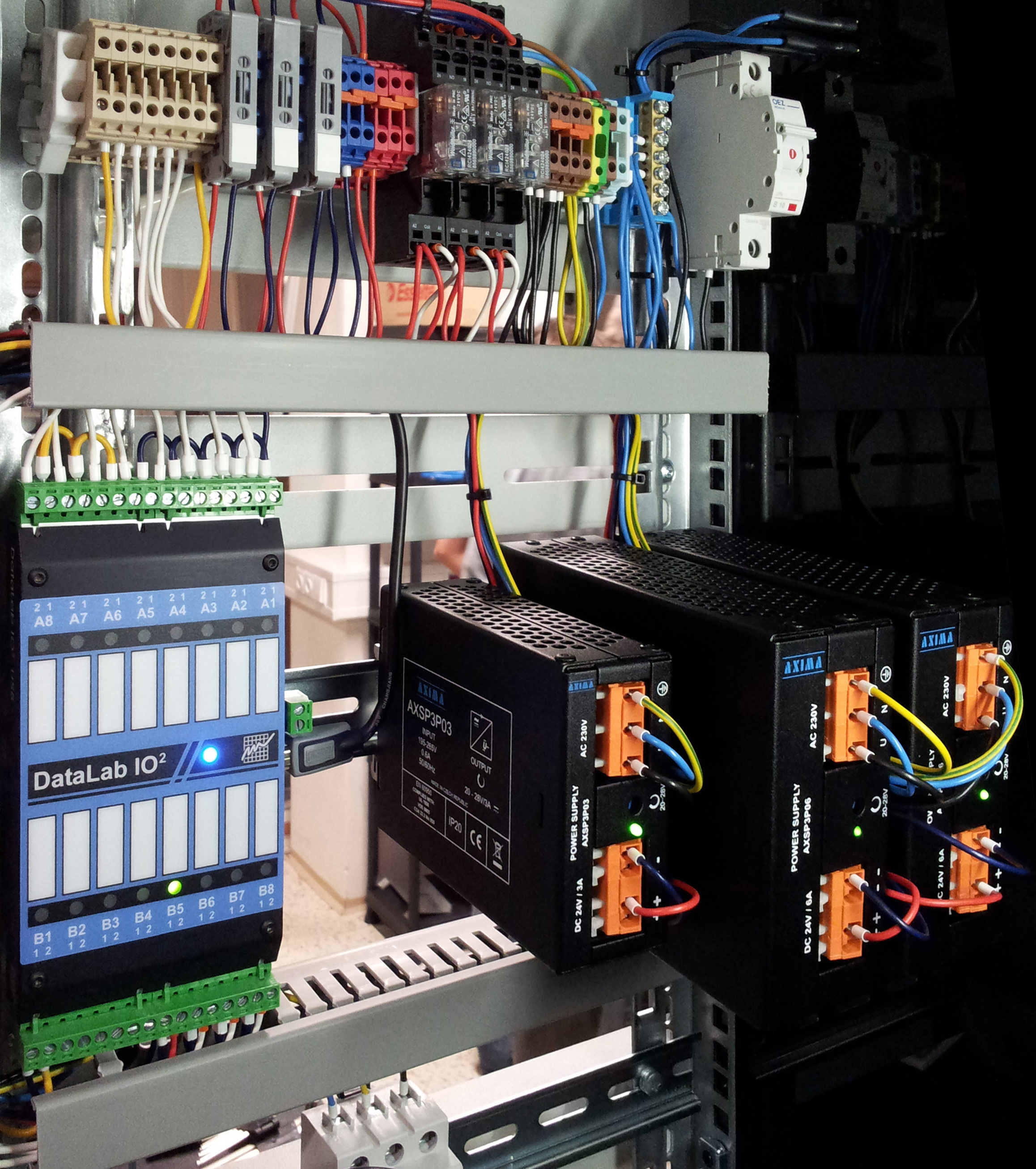 Obr. 1: Jednotka DataLab IO v rozvaděči stroje připojená na systém strojového vidění