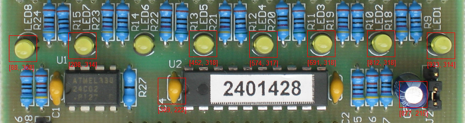 Testovací obrázek má velikost 800 x 600 pixelů a výše uvedený pattern je hledán v celé jeho ploše. Hledáme-li jediný výskyt vzoru a nepotřebujeme-li rotační ani měřítkovou invarianci, jsou rozdíly ve výkonu mezi jednotlivými algoritmy sice nejmenší, ale i v tomto případě mohou být v některých úlohách velmi důležité. Situace se ale hodně změní, budeme-li hledat více výskytů vzoru a ještě větší rozdíly se objeví při požadavku hledání natočených patternů. Pojďme se podívat, jaké budou rozdíly výkonnosti nyní: