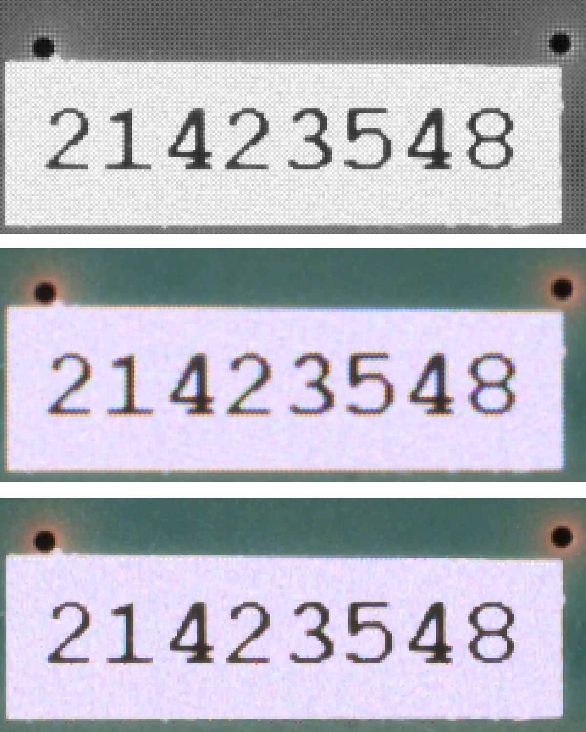 prostřednictvím přítomnosti tmavé či světlé skvrny, jednoduché