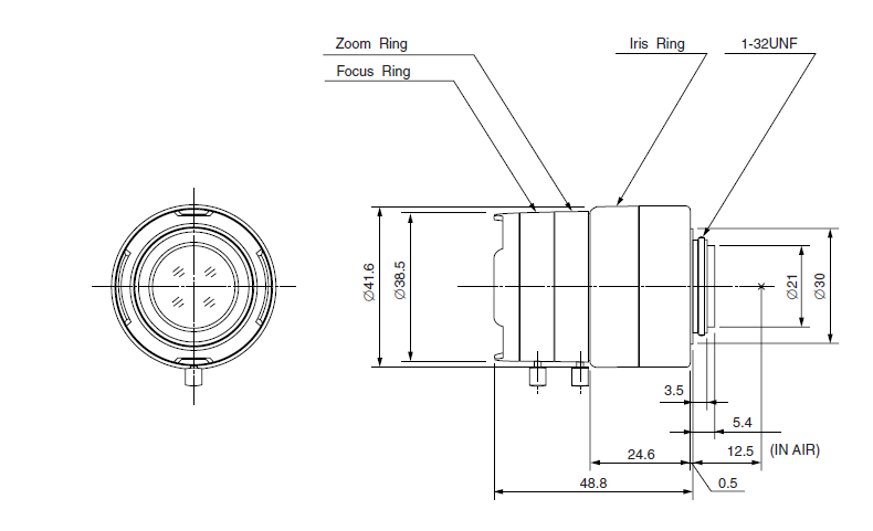 Objektiv Computar H3Z4512CS-IR - schematický nákres