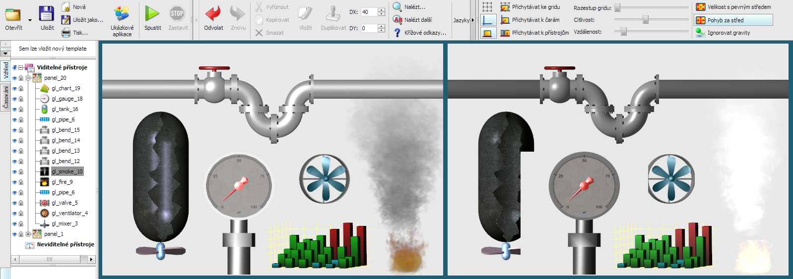 3D virtuální přístroje poskytují kvalitu obrazu a působivé grafické efekty, které nejsou jiným způsobem vykreslování dosažitelné. V prostředí systému Control Web lze navíc libovolný prostorový virtuální přístroj vložit přímo do panelu, který je vykreslován pomocí GDI vykreslovače. Takové použití 3D přístrojů se přímo nabízí - stačí patřičný přístroj vytáhnout z palety. Vše funguje a vypadá hezky, ale i zde lze zcela bezpracně hodně ušetřit a udělat svou aplikaci efektivnější.
