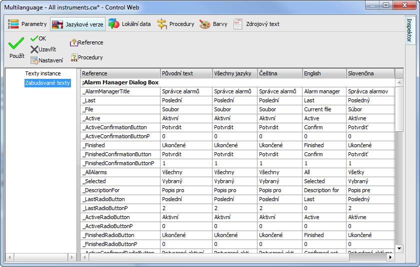 Aplikaci lze připravit v několika jazykových verzích současně Jednotlivé jazykové verze lze přepínat nejen během vývoje aplikace, ale také za běhu Texty ve všech jazycích lze ze systému exportovat a opětovně importovat pro maximální usnadnění jazykových překladů.