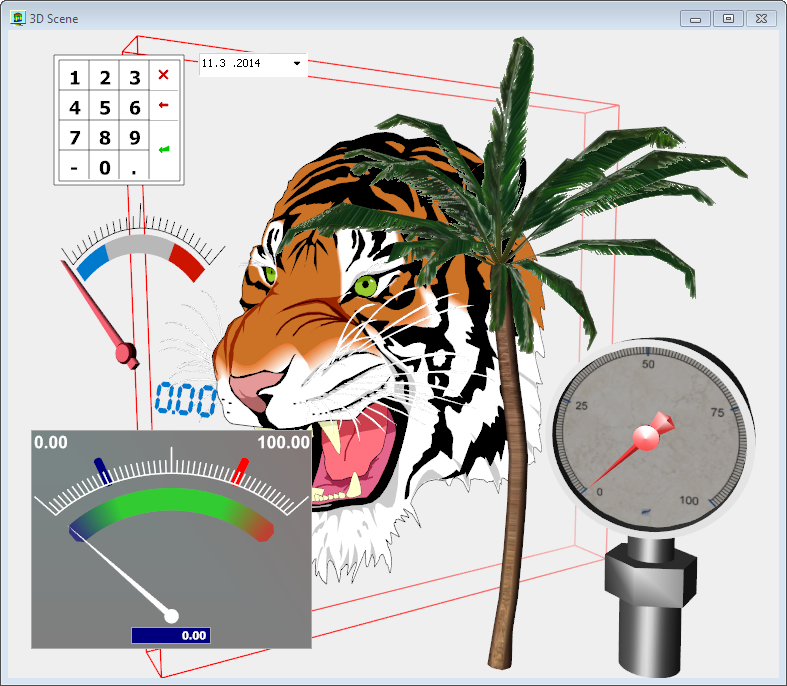 Máme možnost umísťovat 2D přístroje do 3D scény a také veškeré 3D přístroje mohou být vykreslovány v rámci panelu s OpenGL vykreslovačem
