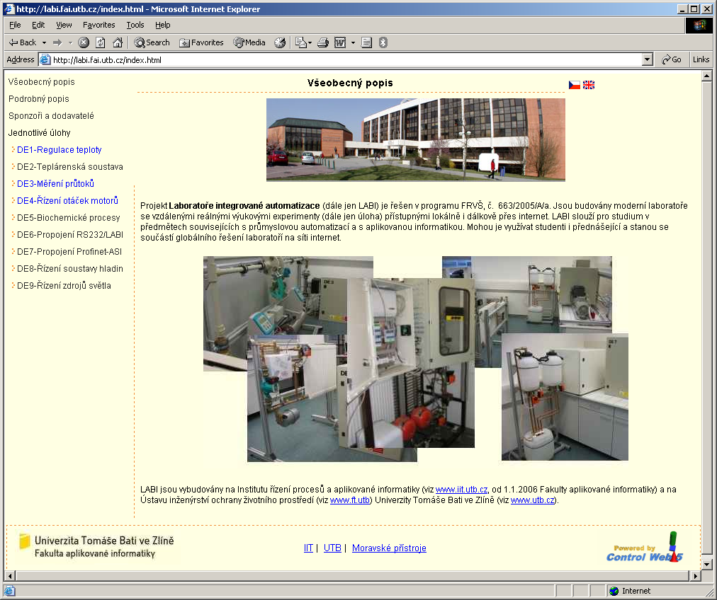 Dne 23. 5. 2006 byla na Universtitě Tomáše Bati ve Zlíně slavnostně otevřena Laboratoř integrované automatizace. Jedná se o moderní laboratoře se vzdálenými reálnými výukovými experimenty přístupnými lokálně i dálkově přes internet. LABI slouží pro studium v předmětech souvisejících s průmyslovou automatizací a s aplikovanou informatikou. Mohou je využívat studenti i přednášející a stanou se součástí globálního řešení laboratoří na síti Internet. A protože systém Control Web zde hraje klíčovou roli, byli jsme při tom.