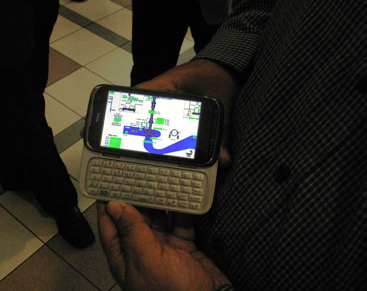 Dálkový pohled na aplikaci systému Control Web, běžící někde daleko v cizině, v rukou jednoho z účastníků setkání