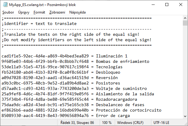 identifikátory v aplikaci jsou nahrazeny přeloženými texty.