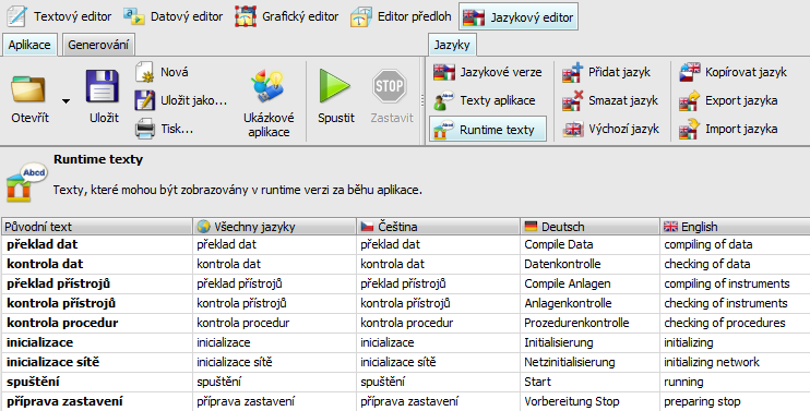 Veškeré texty zobrazované runtime verzí a i uživatelsky definované