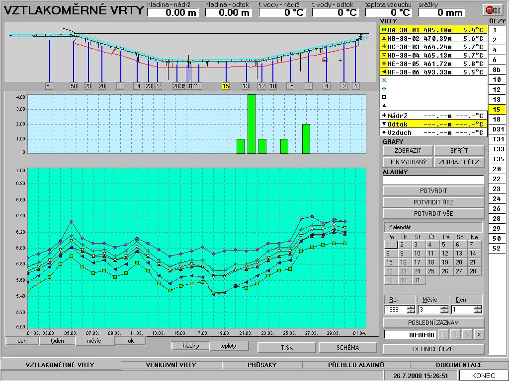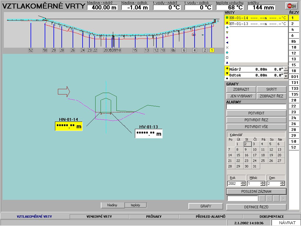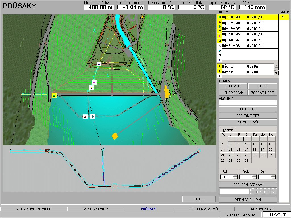 hodnoty a informuje obsluhu přehrady o nestandardních