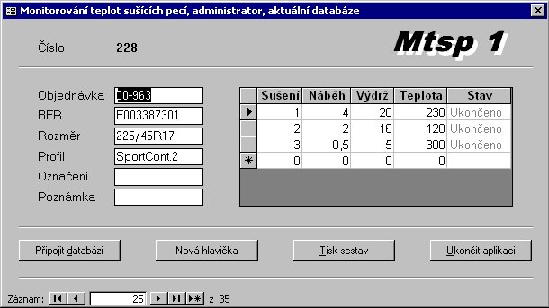 číslo pece a výběr várky. Dvě sběrnice byly použity vzhledem
