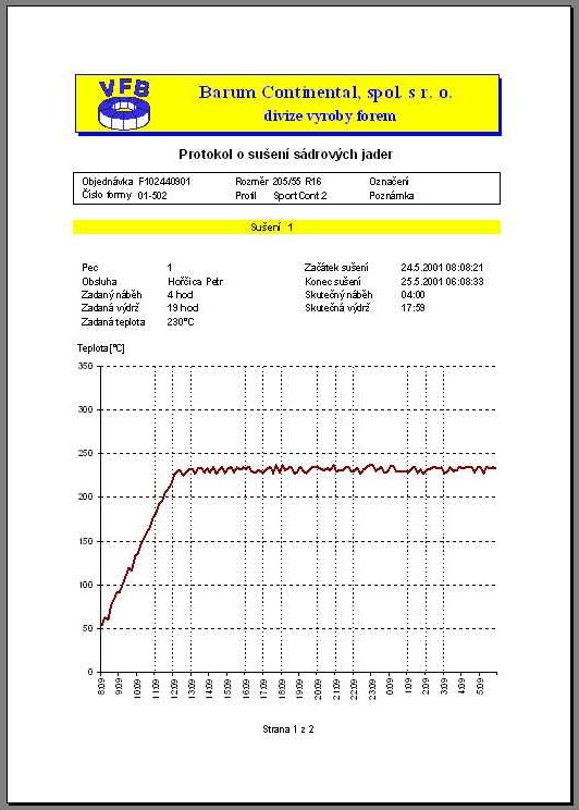 měnění parametrů sušení obsluhou pecí