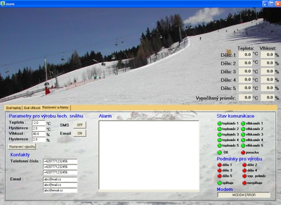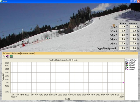 relativní vlhkosti na svahu sjezdovky. Zobrazuje aktuální