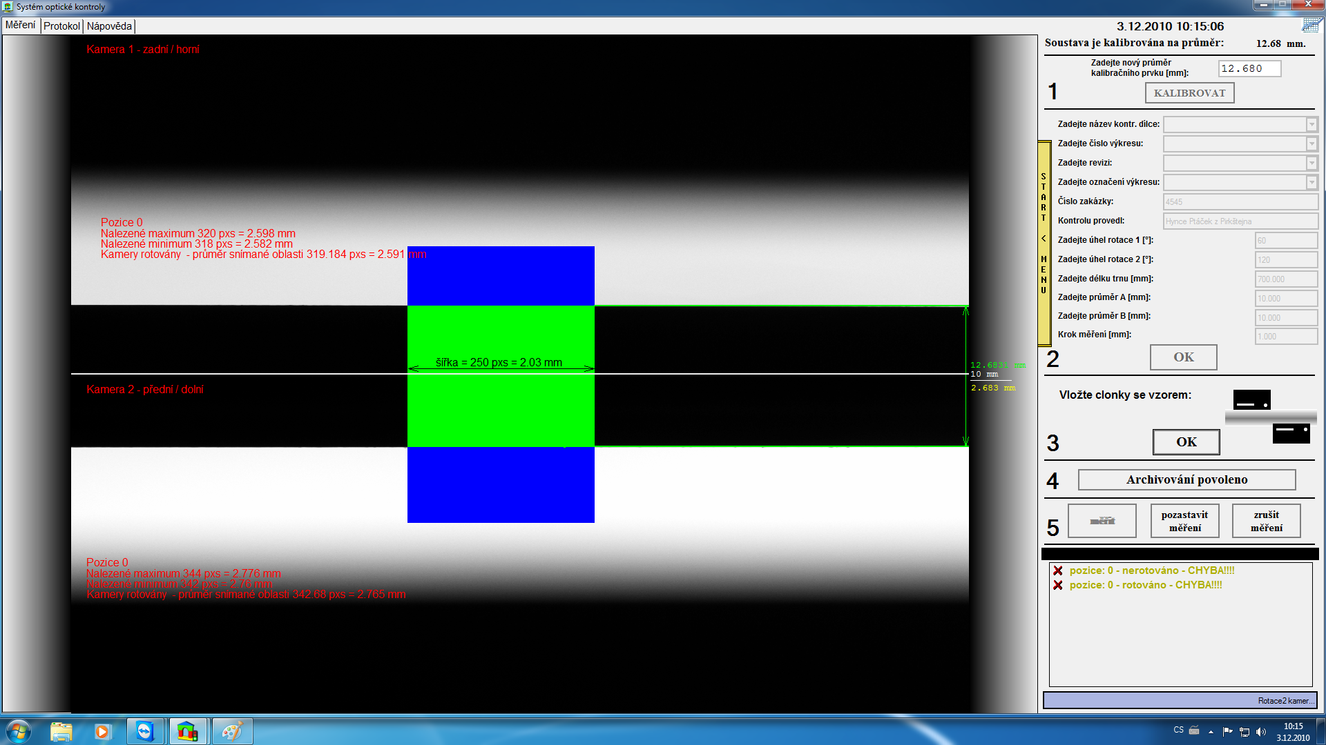 Měřicí stroj snímá obrazy ze dvou protilehlých kamer,