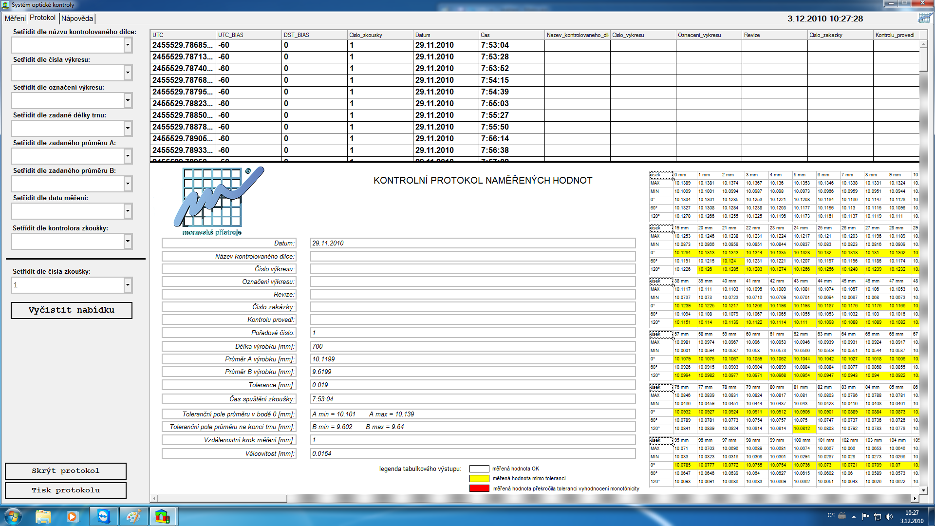 přesnosti měření 2-3 mikrometrů. Aplikace kromě