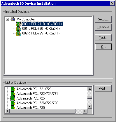 index v seznamu zařízení v programu 'DEVINST.EXE' od firmy ADVANTECH (začíná od nuly).
