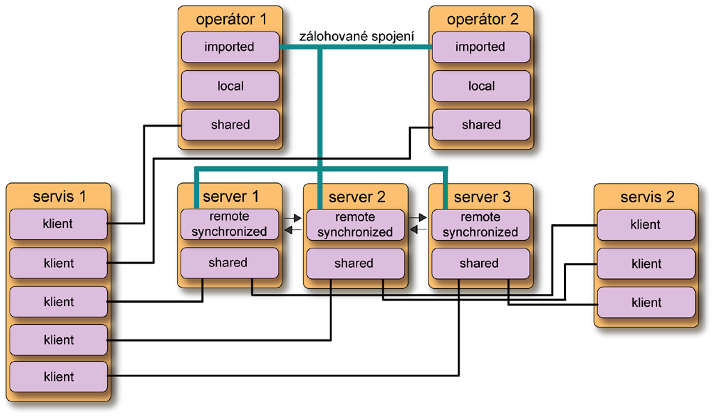 Příklad spojení mezi datovými sekcemi několika aplikací systému Control Web