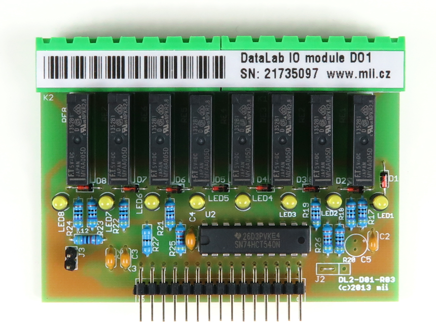 Modul DO1 obsahuje 8 reléových spínacích kontaktů. Výstupy jsou