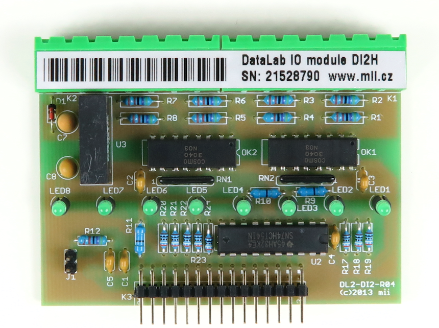 Modul DI2 obsahuje 8 digitálních vstupů se společným pólem.